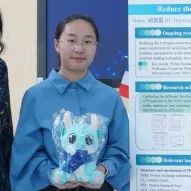 王菁鹤同学带来的“Crowd Computing, Data Mining and Resource Management in Internet of Things”主题海报、胡昊星同学带来的《Reduce the hydrogen crossover in PEMWE》海报获得“最佳设计奖”,巴黎卓越工程师学院党委副书记姚雪为他们颁奖。