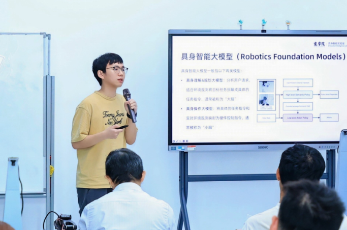 在开营仪式上,来自达摩院的三位技术专家带来了内容充实的专题讲座。他们深入浅出地介绍了大模型的发展脉络与最新进展,帮助同学们建立起对AI底层逻辑的整体认知。随后,专家们详细讲解了乐云具身智能开发平台的架构与功能,演示云端协同接入路径,并通过实操展示了从数据采集到技能部署的完整流程。主办方还在巴黎卓越工程师学院学生科创中心搭建了专用开发平台,为同学们提供实践环境与技术支持。
