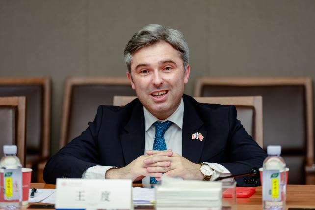 2025年11月26日,在第三届“三分钟通俗易懂法语说论文”大赛于上海交通大学闵行校区举行之际,法国驻沪总领事王度(Joan VALADOU)、科技领事Rachid MALTI,法国巴黎西岱大学副校长 Antoine KOUCHNER一行访问上海交通大学。上海交通大学副校长张兆国在闵行校区会见访问团,巴黎卓越工程师学院法方院长Zied MOUMNI、副院长钟圣怡,以及李政道研究所党委副书记李姝姝等参加会见。