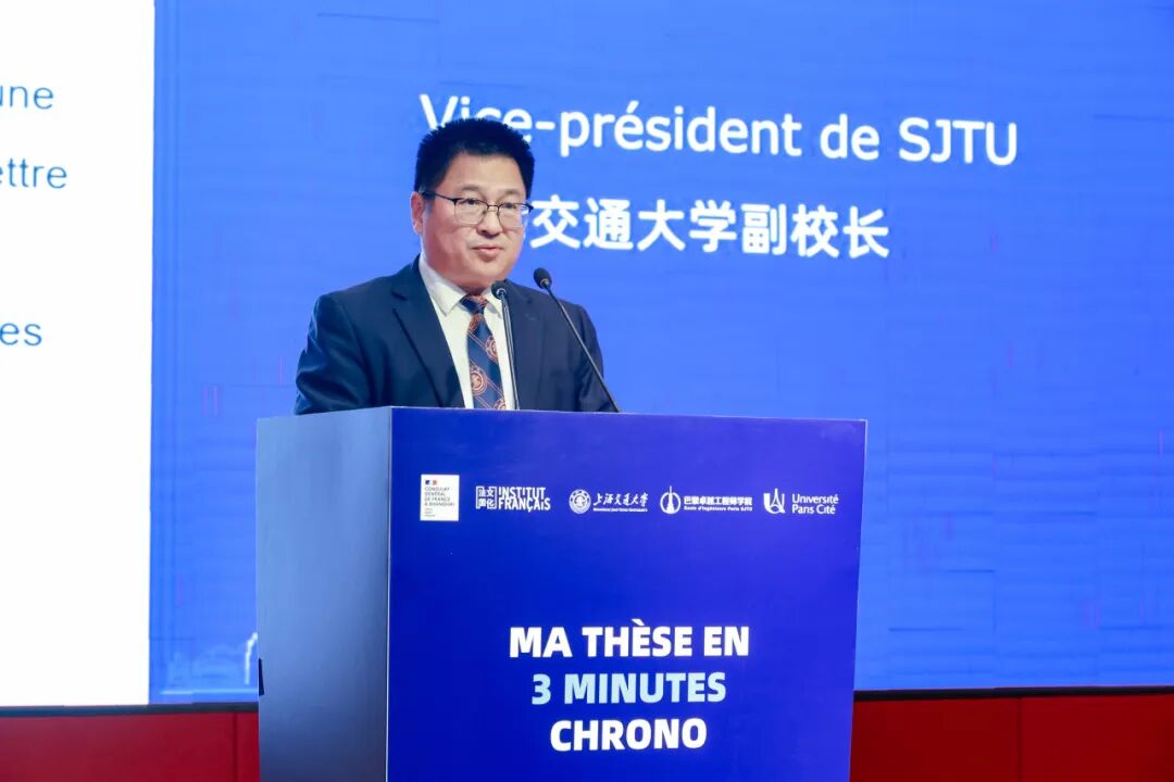 安托尼·库什那在致辞中表示,此次赛事体现了科学跨国传播的力量。他高度评价中法导师团队在博士生培养中的投入,并指出,本次大赛恰逢巴黎西岱大学与上海交通大学正式签署合作框架协议,将为双方在自然科学、人文社科、卫生健康等领域拓展合作开启新起点。他祝愿选手们在三分钟内展现科研魅力,并期待双方未来在更多领域深化交流。