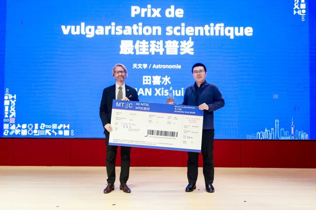 经过激烈比拼,来自北京大学的田喜水获得最佳科普奖,来自武汉大学的宋宇亮获得“中法纽带奖”,来自巴黎第三大学的陈雪静获得最佳口才奖、最受公众欢迎奖。