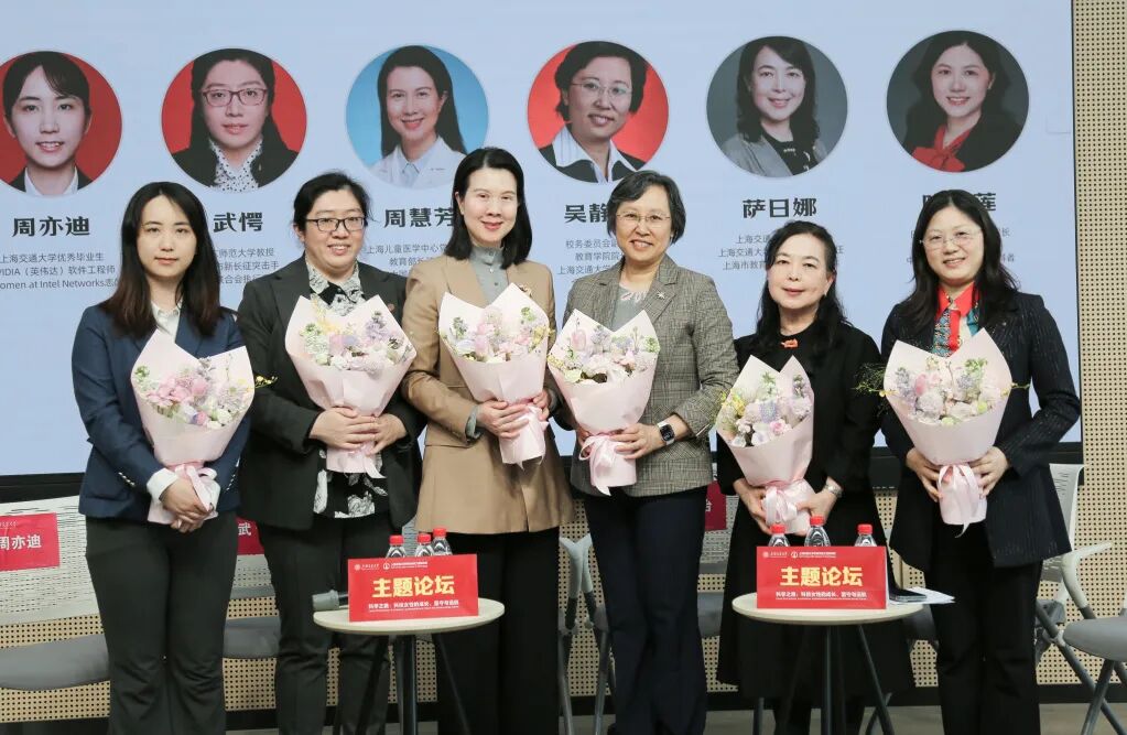 上海交通大学校务委员会副主任、教育学院院长吴静怡教授,医学院附属上海儿童医学中心党委书记周慧芳教授,妇女研究中心主任萨日娜教授,华东师范大学精密光谱科学与技术国家重点实验室武愕教授,上海交通大学巴黎卓越工程师学院院长陈彩莲教授等杰出女性学者出席,学院青年校友、NVIDIA软件工程师周亦迪一同参与对话。论坛由学院大四学生徐缘主持,一场跨越代际、贯通中法、融合科研与实践的思想盛宴温情启幕。
