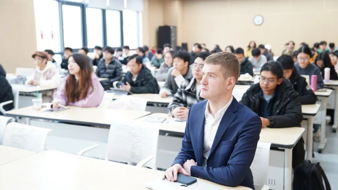 会后,Vincent LUCIANI还为全校学子带来了一场题为“AI for Education: From Challenges to Opportunities”的主题讲座。他结合ARTEFACT在全球范围内的前沿实践,分享了人工智能时代下人才培养与职业发展的新理念与新路径。