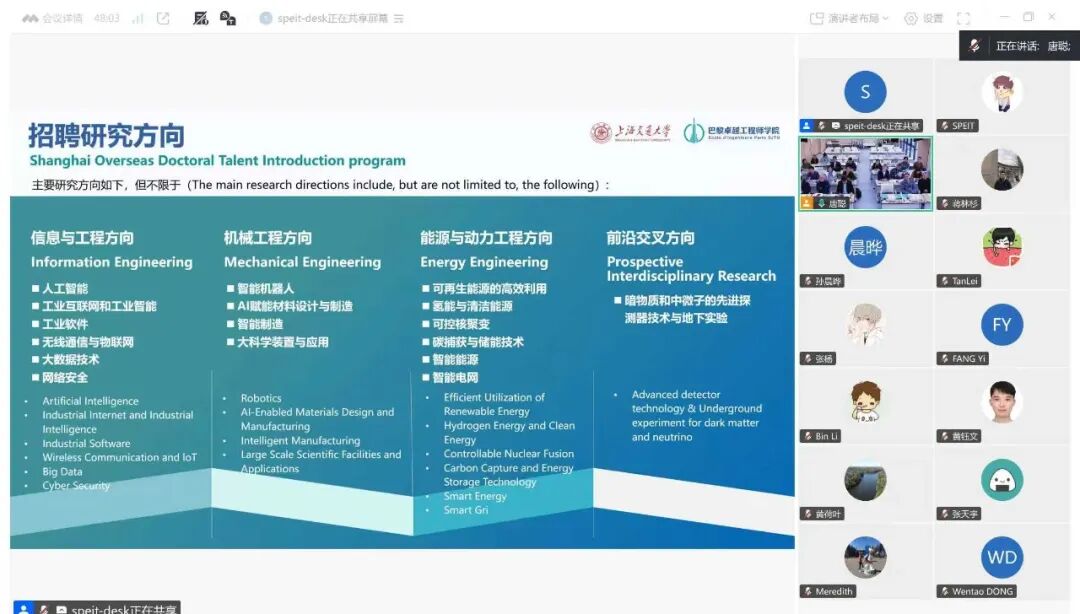 As a sub-forum of SJTU's Zhiyuan International Young Scholars Forum, this Sino-French International Young Scholars Forum serves as a vital platform for global young scholars to exchange cutting-edge academic insights and explore collaborative opportunities, while also acting as a key vehicle for SPEIT to recruit outstanding talent. SPEIT will continue to embrace an open and inclusive approach globally, warmly inviting young talents dedicated to exploring scientific frontiers and scaling new heights in technology to join us in building a world-class engineering school!