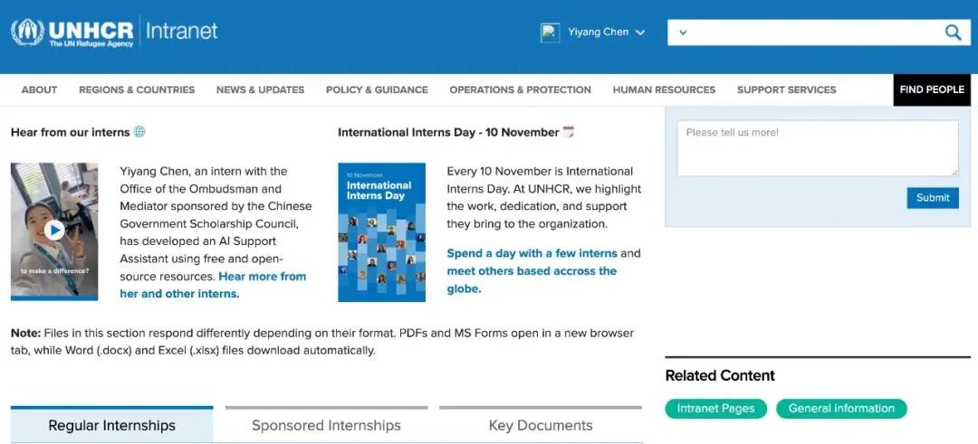 Recently, the UNHCR official website featured an interview with SPEIT student Chen Yiyang on its homepage under the Spotlight: Hear from our interns section, where she appeared as one of the intern representatives.
