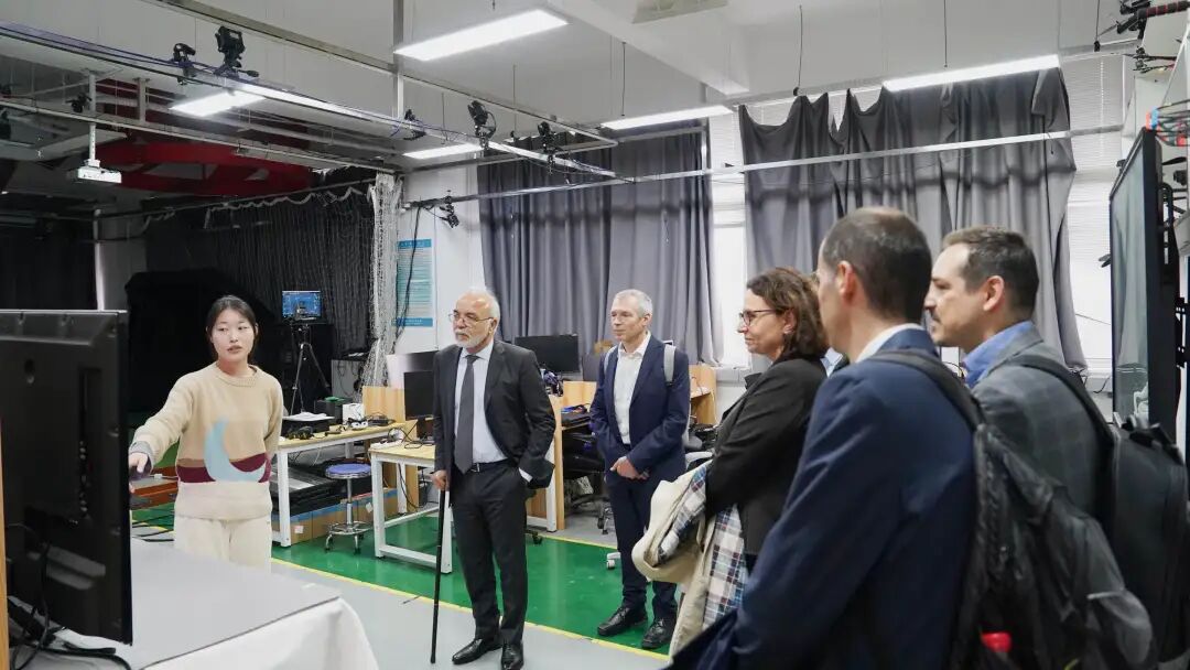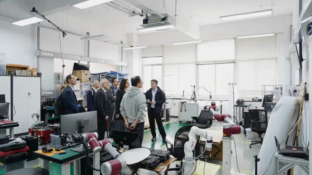 Dans l’après-midi, XIONG Zhenhua a accompagné la délégation pour visiter le laboratoire de robotique intelligente qu’il dirige. Il a présenté de manière systématique les derniers résultats du laboratoire dans les domaines de la coordination œil-main des robots industriels, de la perception autonome et du contrôle intelligent, et a présenté les percées réalisées par l’équipe dans des technologies clés. Les membres de la délégation ont manifesté un vif intérêt pour les technologies de pointe en robotique intelligente, et ont mené des échanges approfondis avec XIONG Zhenhua concernant les détails techniques, les applications potentielles et les orientations de coopération. Ils ont exprimé leur volonté de promouvoir activement, à l’avenir, une coopération concrète entre la Chine et la France dans les domaines de la robotique intelligente et d’autres secteurs.