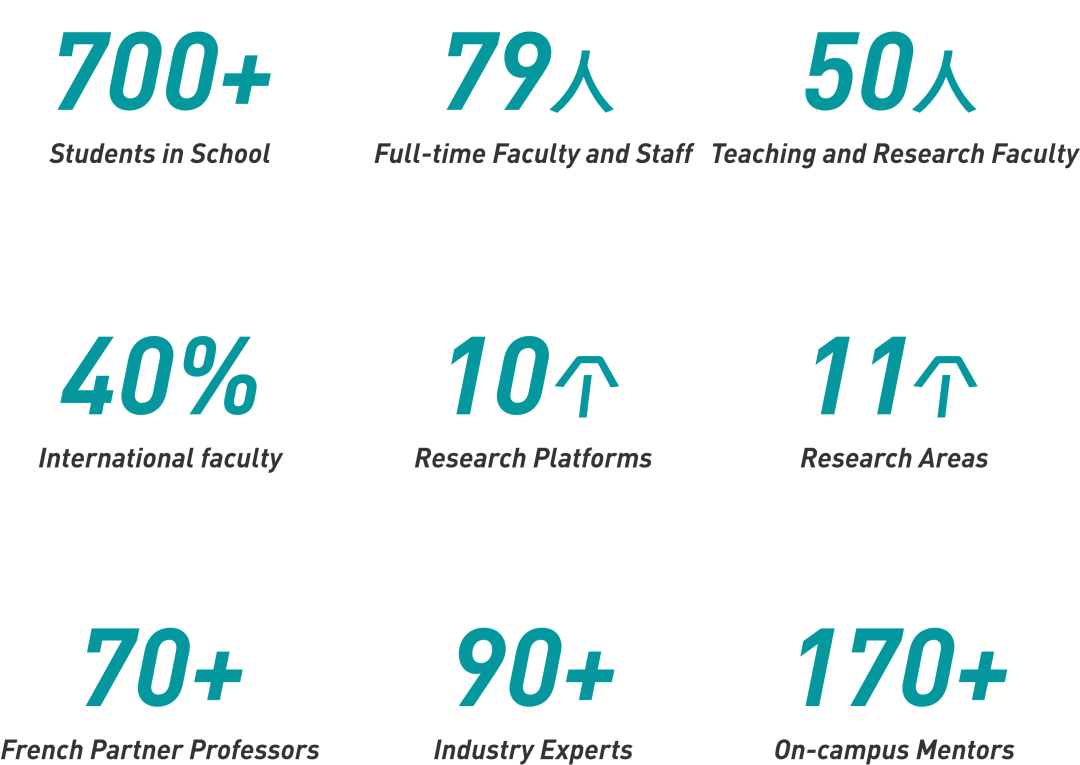 SPEIT consistently adheres to a “talent-strong institute” strategy, with targets of “high-level, internationalized, diversified” faculty. SPEIT consists of 50 members, with foreign teachers accounting for 40%. Among them, there are 2 national-level talents and 4 national-level young talents. In addition, 70 senior French professors and 94 enterprise experts serve as an important part of staff, jointly participating in and promoting international scientific research cooperation and university-enterprise cooperation.